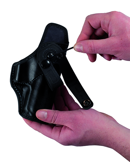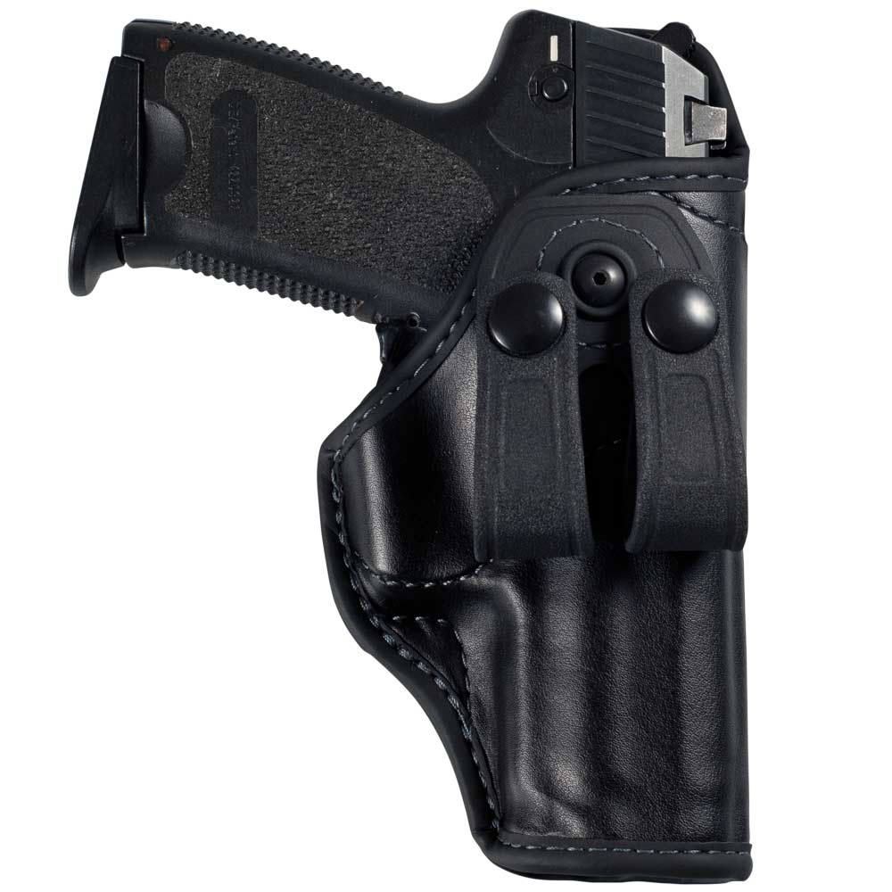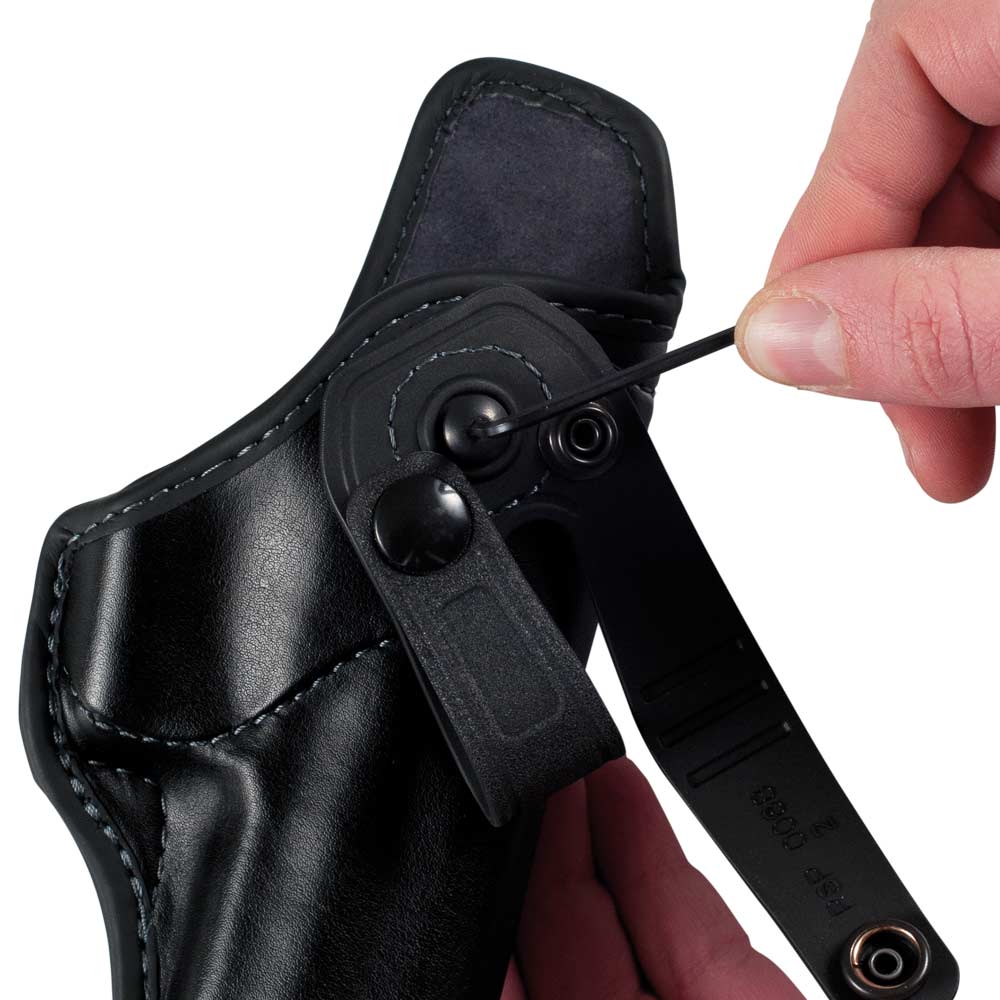 Tutti i bordi della fondina sono protetti con uno materiale speciale, che ne limita l’usura. La portabilità interna ai pantaloni, con uno speciale passante multi posizione in Rubber-tech e velcro, apribile con un bottone a pressione.