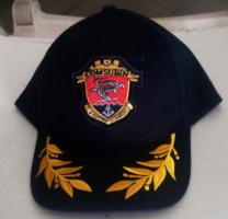 Berretto con logo comsubin ricamato e cucito su berretto baseball con regolatore posteriore di misura. allori ricamati, sulla tesa del berretto, a macchina