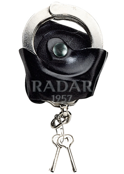 Porta manette in Premium Leather, aperto ad estrazione rapida, applicazione in cintura mediante bottone a scatto mono direzionale.