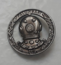 Fregio metallico da basco con chiusura a forcella e logo categoria palombari