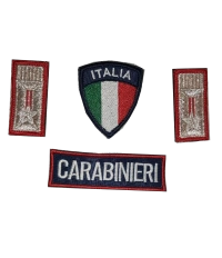 Kit di 4 elementi (coppia alamarini, scudettino Italia e scritta ricamata a macchina) per la polo estiva carabinieri, tutto comprensivi di velcro maschio