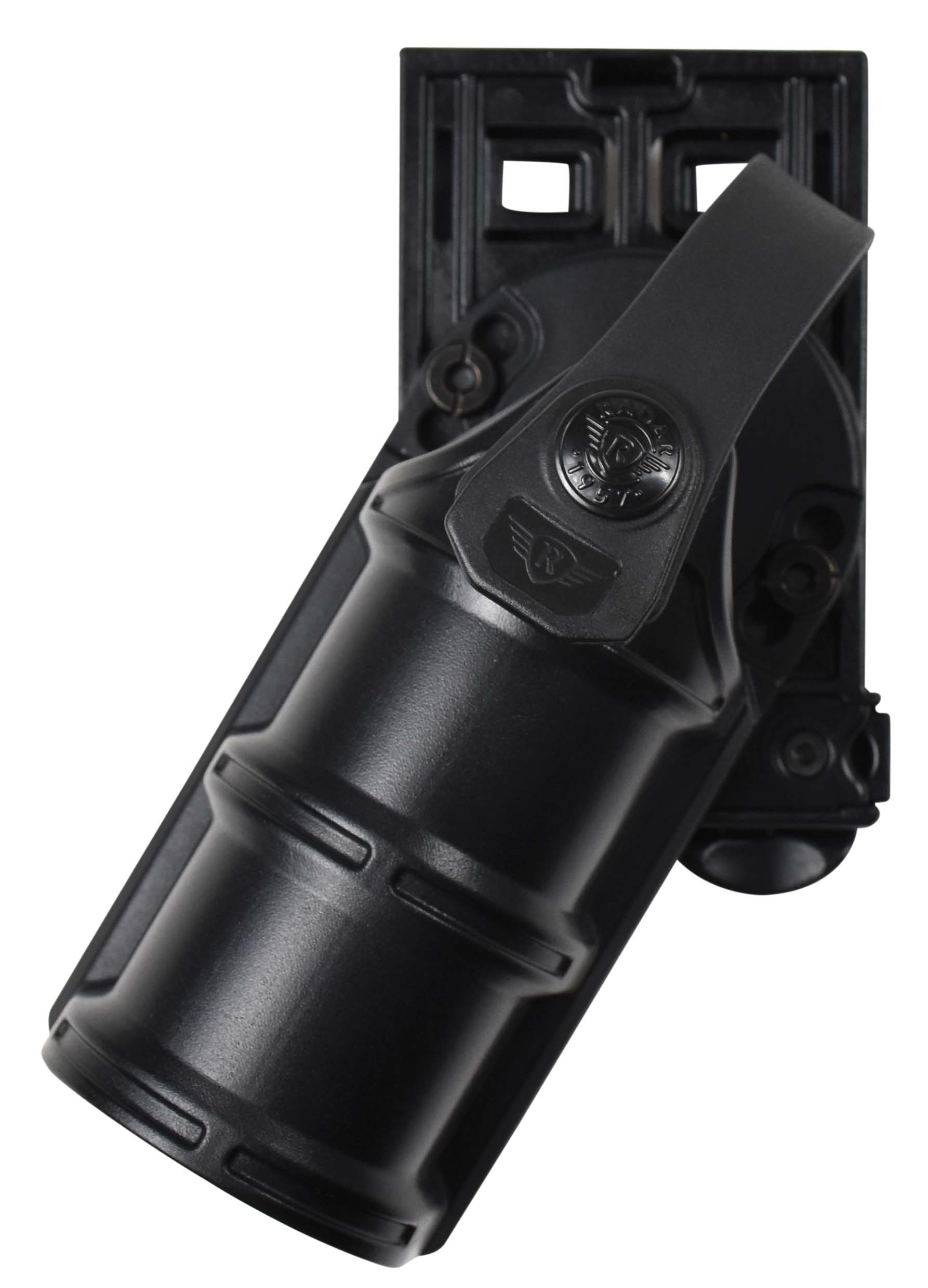Porta manganello diametro 33-36 in Polym-Plus iniezione, ambodestro, aperto sopra e chiuso con laccino e bottone con passante U.B.M. Doppie gambe molle ready.