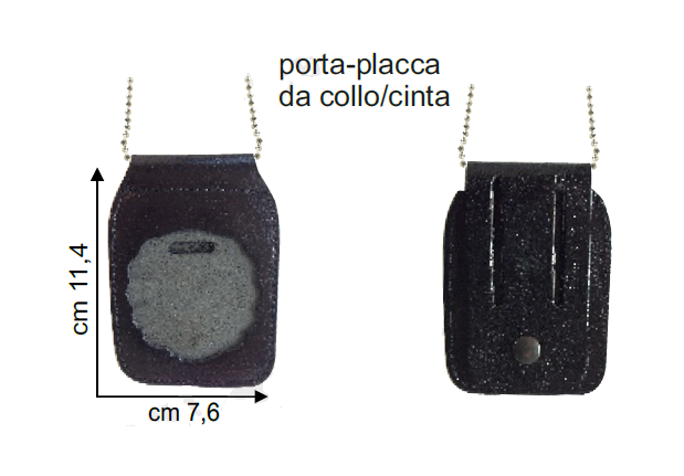 portaplacca da collo e da taschino in pelle con catenella nickel free