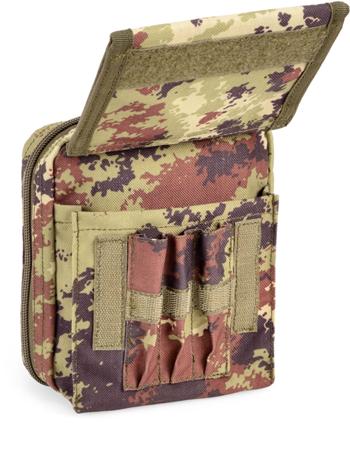 Tasca portacartina topografica con pannello plastificato. Esternamente una seconda tasca permette l’inserimento di documenti o tesserini protetti da uno strato plastificato waterproof e di penne o materiale topografico.